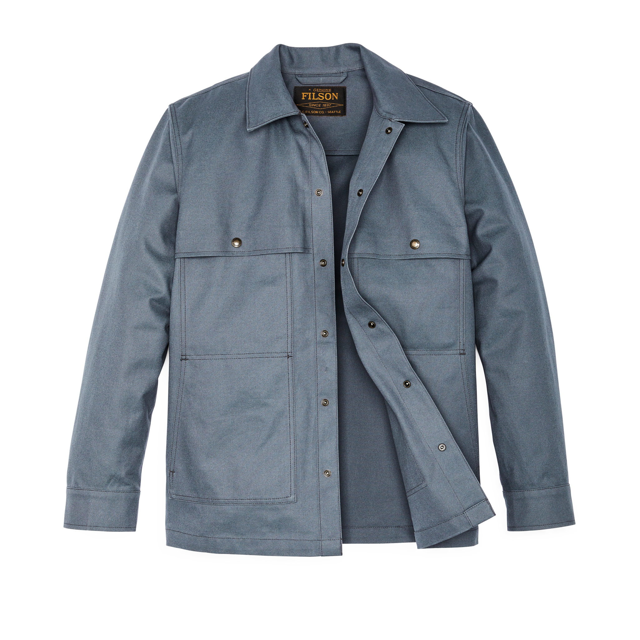 A durable layer for chilly weather. this Jac-Shirt is made with the unwaxed version of our iconic canvas that’s sheltered foresters and sportsmen in the backcountry for a century. The 10.5-oz. 2-ply by 2-ply cotton duck canvas is renowned for its exceptional abrasion resistance. Treated with a long-lasting DWR. it repels light rain and resists staining. An extra layer over the front shoulders provides additional protection and hides the two snap-secure chest pockets. The side-entry hand pockets are easy to access and are bar-tacked for durability. The metal snaps used for the adjustable cuffs and front closure are virtually unbreakable. and easy to operate while wearing work gloves. Side-seam slits provide greater ease of motion.