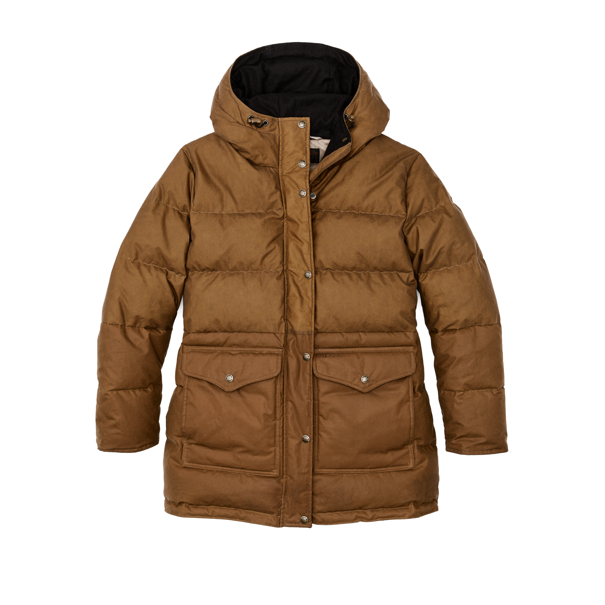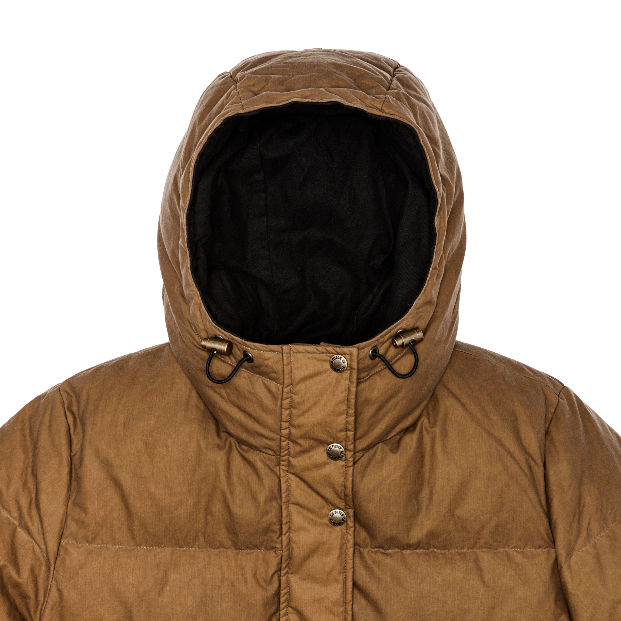 Modeled after vintage arctic parkas. this lightweight coat is made for comfort in frigid weather. The dry-waxed cotton shell turns away rain. wind. and snow. It’s filled with duck down. some of nature’s lightest and warmest insulation. The drawcord-adjustable hood is large enough to fit over caps. and lined with comfortable cotton twill. The sleeves feature interior rib-knit cuffs made from a wool blend to seal in the warmth. The body is lined with lightweight cotton and the sleeves with easy-layering polyester twill. Interior and exterior storm guards protect the front two-way zipper from icy winds.